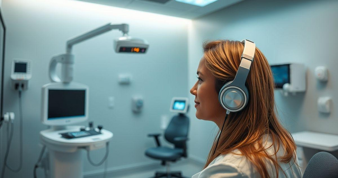 O primeiro passo é a audiometria tonal, onde o paciente escuta uma variedade de sons em diferentes frequências e intensidades, utilizando fones de ouvido.